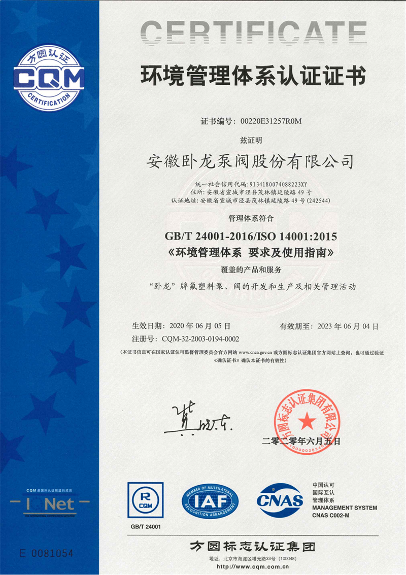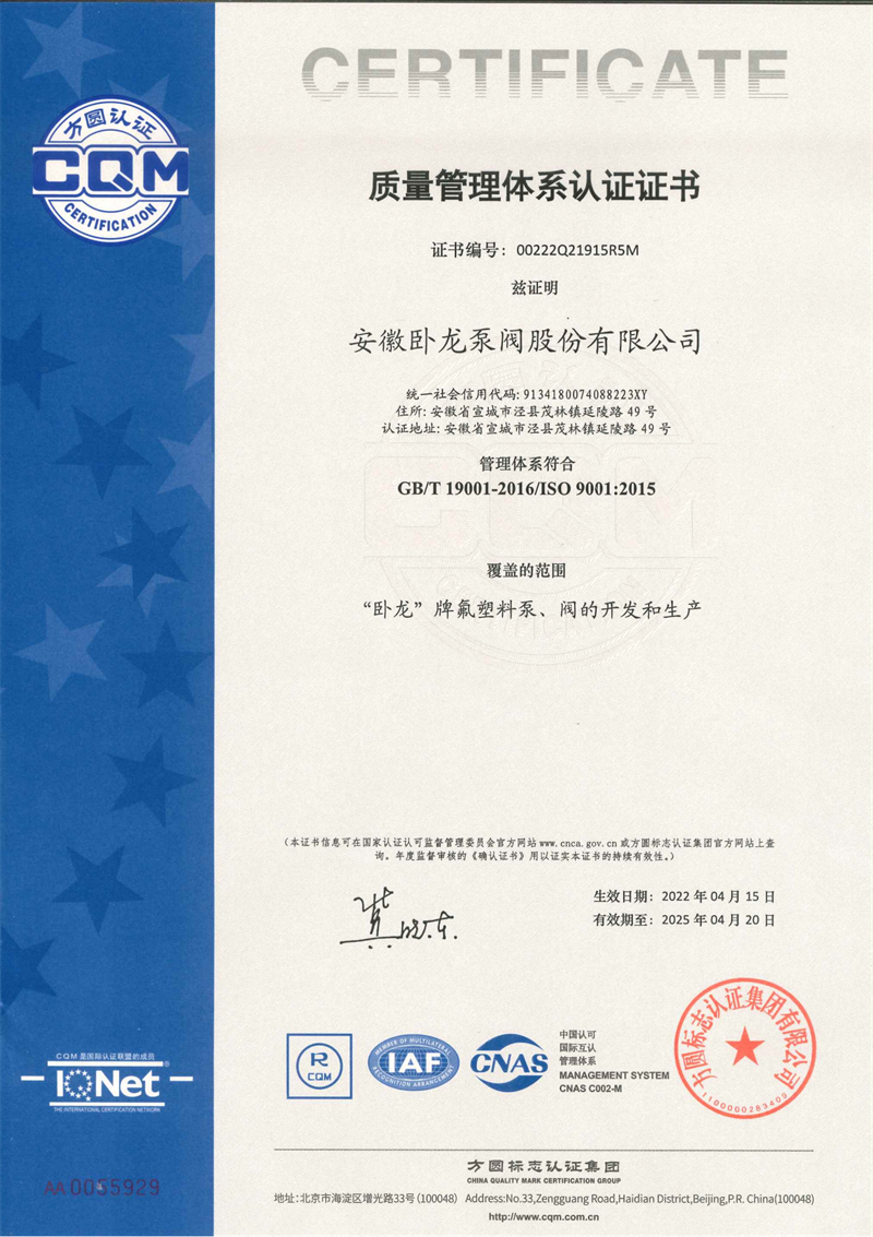 安徽臥龍泵閥股份有限公司位于風(fēng)景秀麗的江南古鎮(zhèn)——安徽省涇縣茂林鎮(zhèn)。公司前身涇縣氟塑料制品廠創(chuàng)建于1985年,是國(guó)內(nèi)較早引進(jìn)中科院上海有機(jī)化學(xué)研究所專利材料——"氟塑料合金",并以此耐腐蝕材料專業(yè)生產(chǎn)制造化工泵、閥、襯氟管道等產(chǎn)品的企業(yè)。公司經(jīng)過(guò)歷次的改制變革,2015年更名為安徽臥龍泵閥股份有限公司。